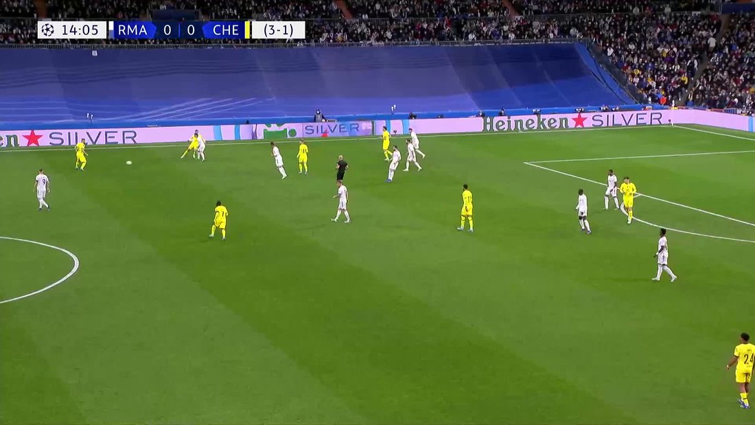 Широко атакует Челси. Бьет по воротам Антонио Рюдигер, но слишком поторопился с решением.