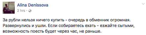 Другие пользователи просили отменить обмен валюты. Для того, чтобы купить еду на фестивале, посетителям нужно сначала обменять рубли на местную валюту. Рублевые купюры на фестивале судя по сообщениям не принимали, а в обменник образовалась ещё одна очередь.