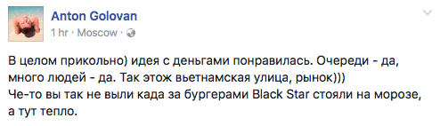 Другие посетители, наоборот, оценили идею с обменом денег, вспомним очереди за бургерами Black Star.